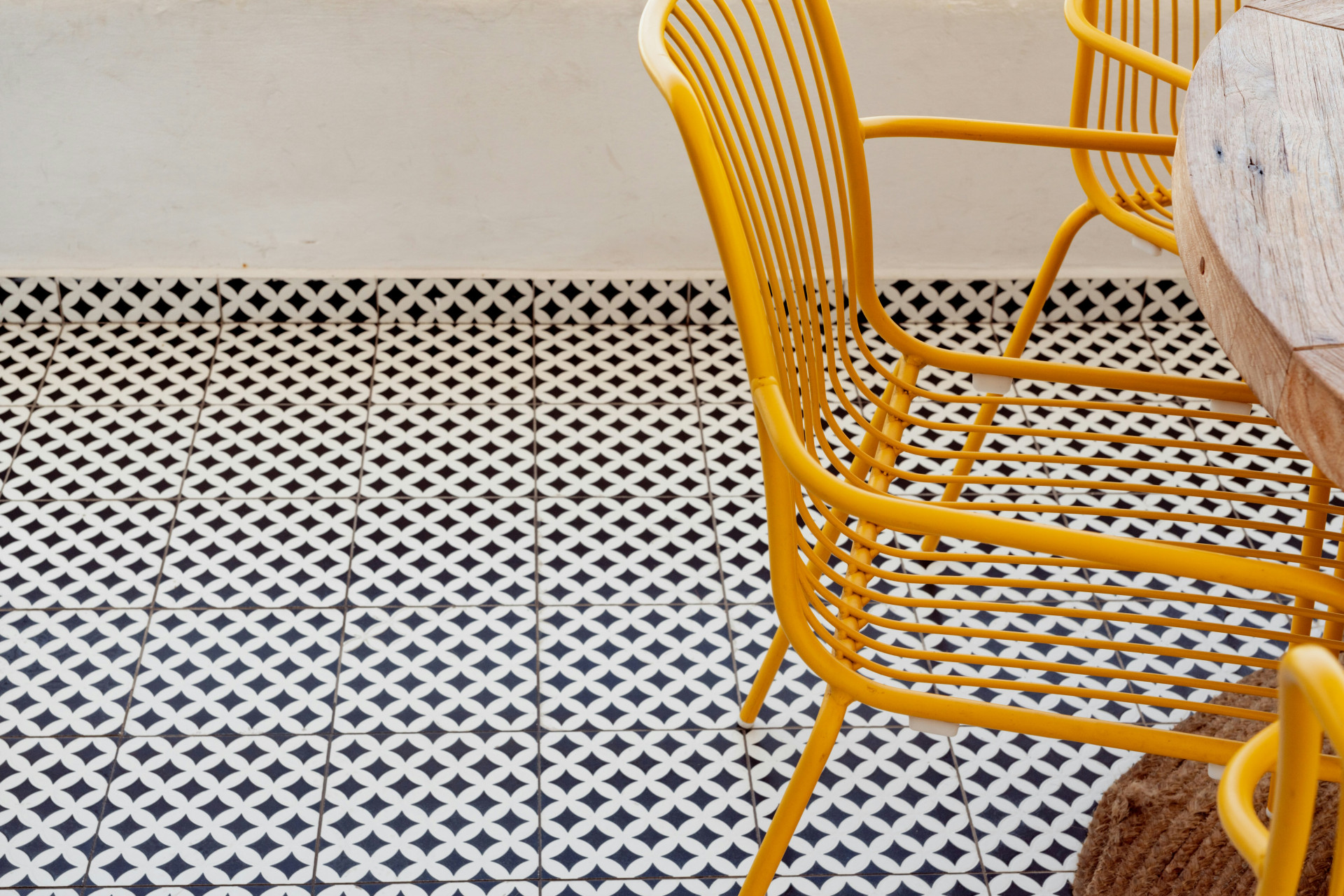 - Mønstrede cementfliser – ofte med geometriske eller blomstrede motiver, der giver et håndlavet og autentisk udtryk.